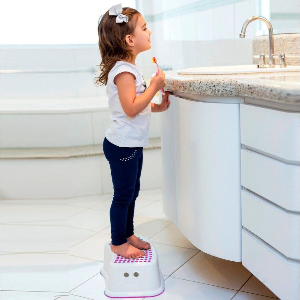 Possui superfície com antiderrapante em silicone, seguro e portátil, é ideal para o dia a dia das crianças. É exelente para uso no banheiro ao lavar as mãos, escovar os dentes e desfralde.